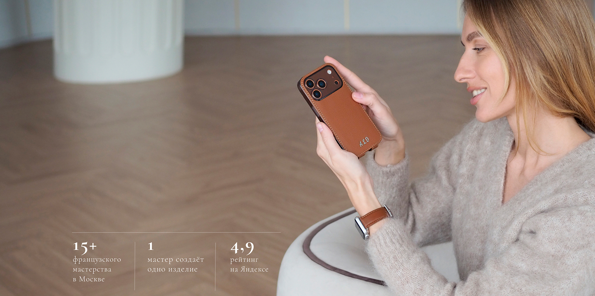 Мы закупаем сырьё там же, где и мировые дома моды. Выбираем руками — самую нежную на ощупь кожу, мягкую как шёлк. Только верхний слой — fleur: именно он даёт нашим изделиям ту лёгкость, плотность и благородство, которых не найти больше нигде.