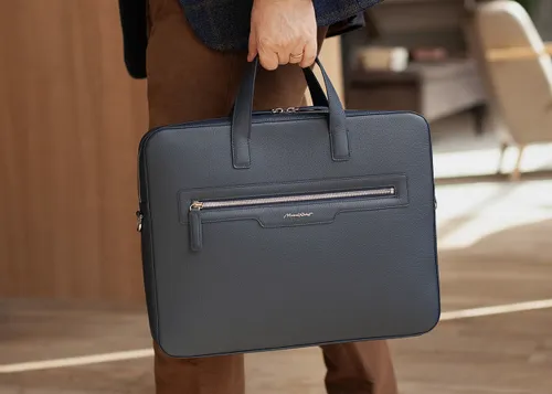 Сумка для ноутбука и документов Bocage Classic из кожи теленка, синего цвета -