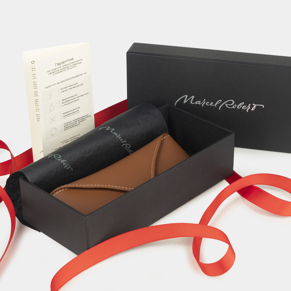 Мягкий и приятный на ощупь, при этом прекрасно держит форму. В крышку вшита кнопка-магнит, поэтому футляр открывается и закрывается одним движением. Его объем рассчитан, чтобы любые очки для зрения легко помещались внутрь.