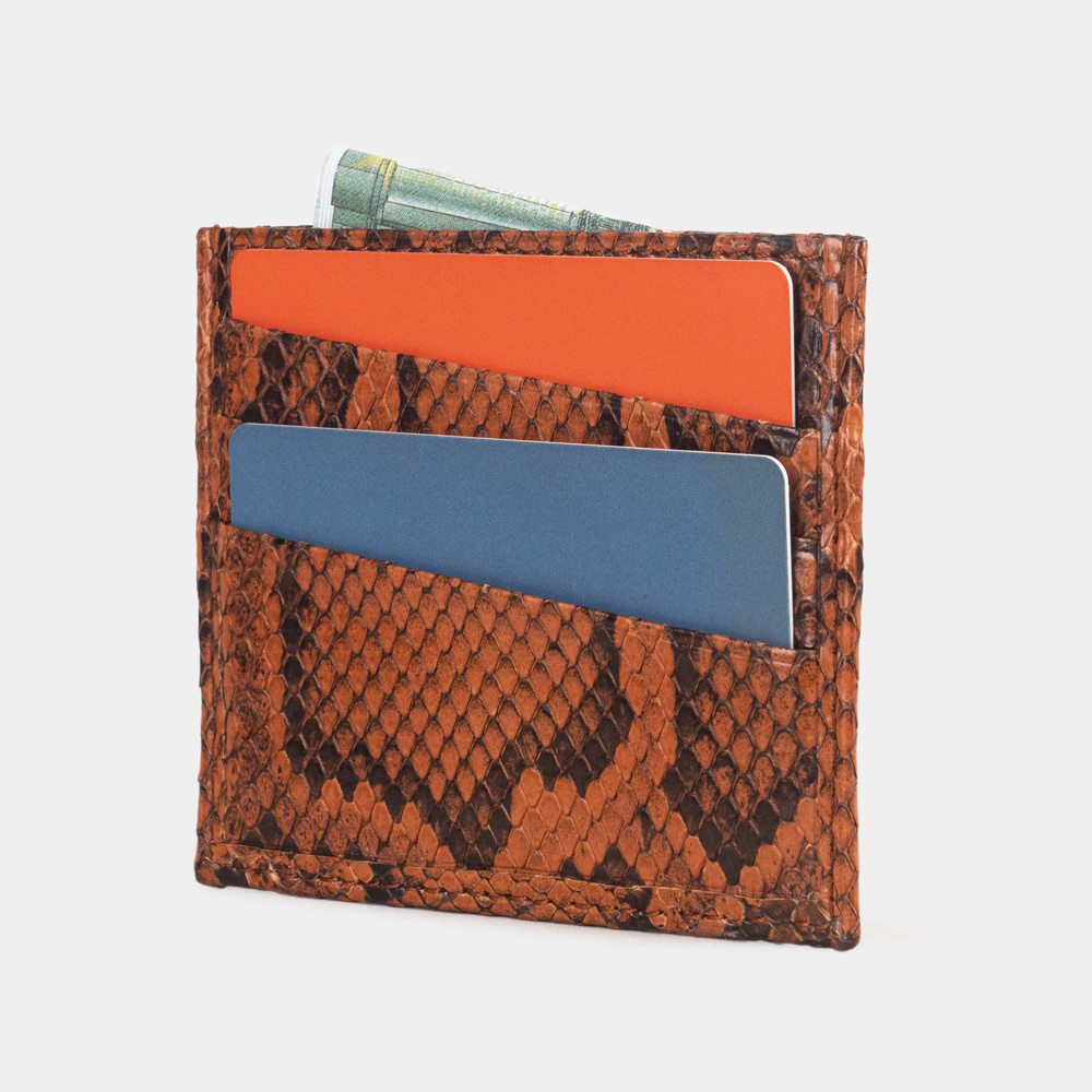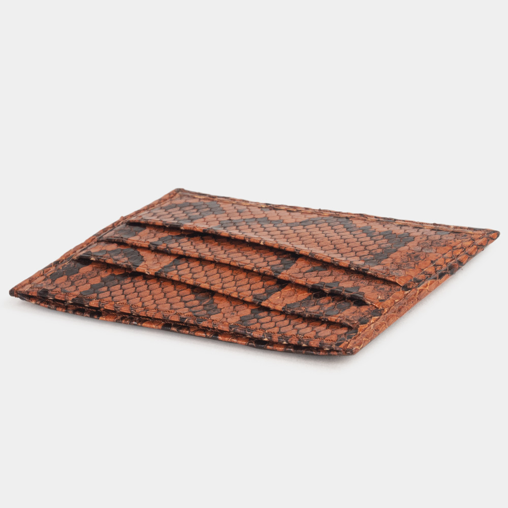 Картхолдер кожаный, питон цвета коньяк