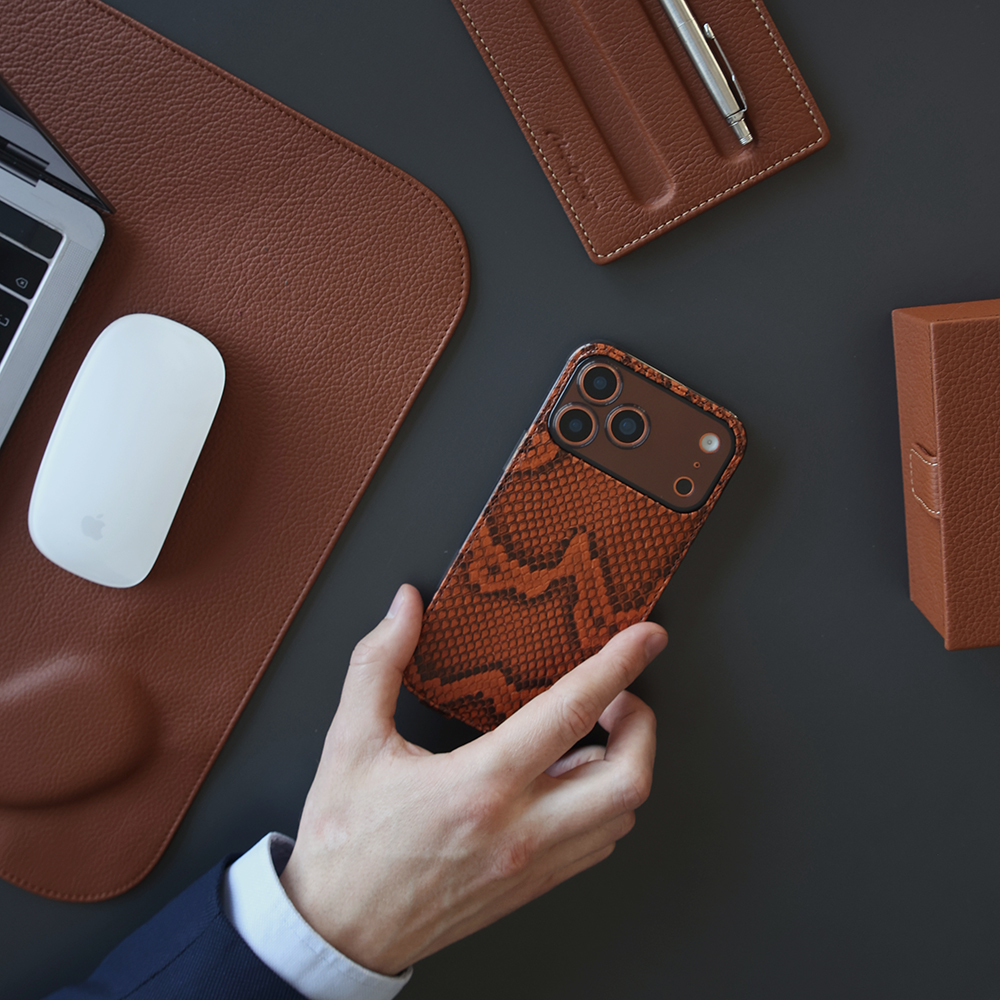 Чехол-накладка для iPhone 17 Pro из кожи питона, цвета коньяк