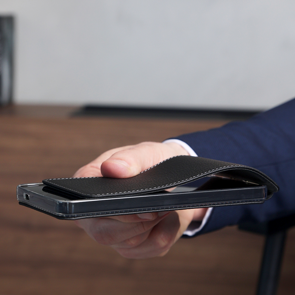 Ультратонкий, легкий, надежный и качественный чехол Robert. С магнитами внутри. Поддержка MagSafe. Натуральная кожа теленка, черного цвета.