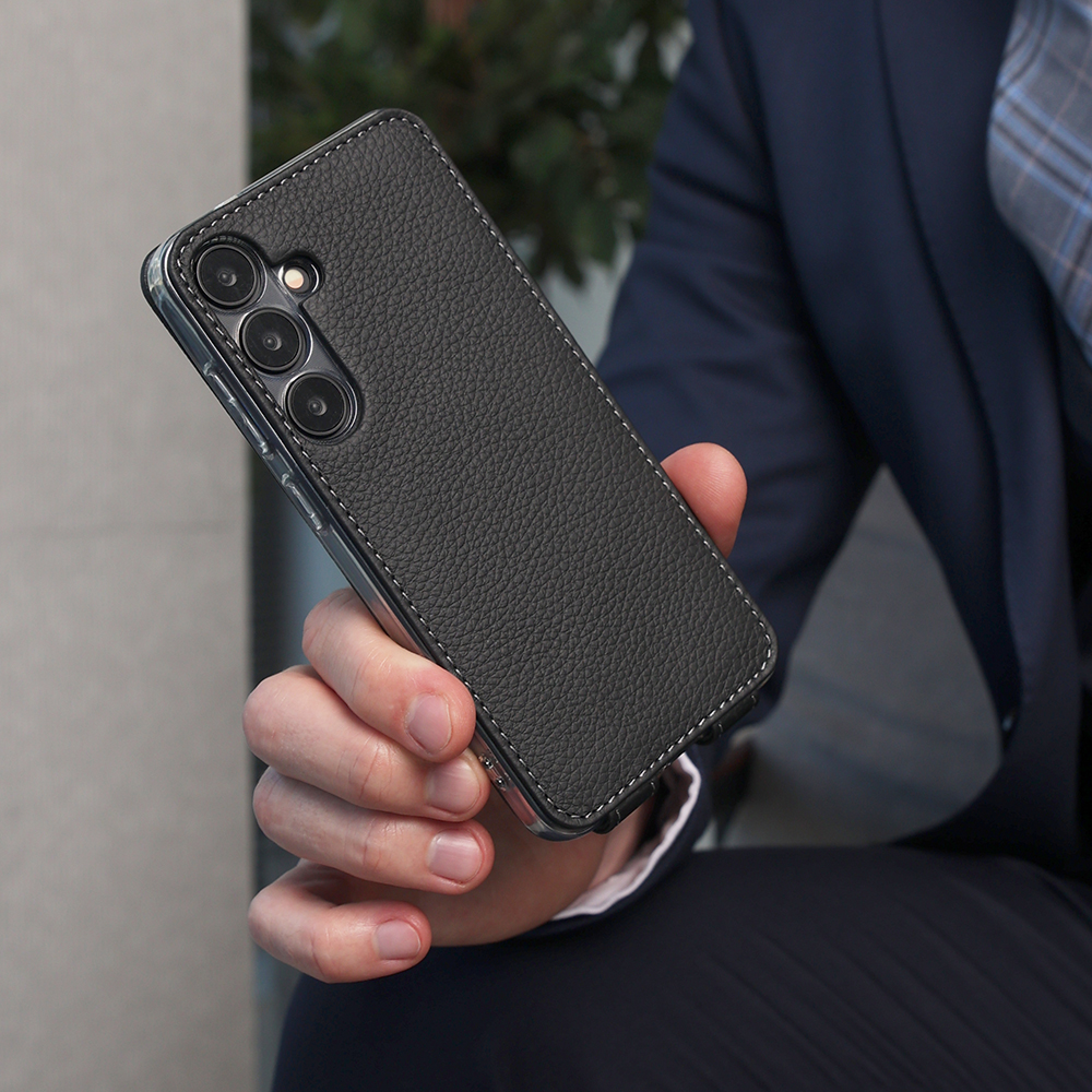 Чехол для Samsung Galaxy S24 из натуральной кожи теленка, черного цвета