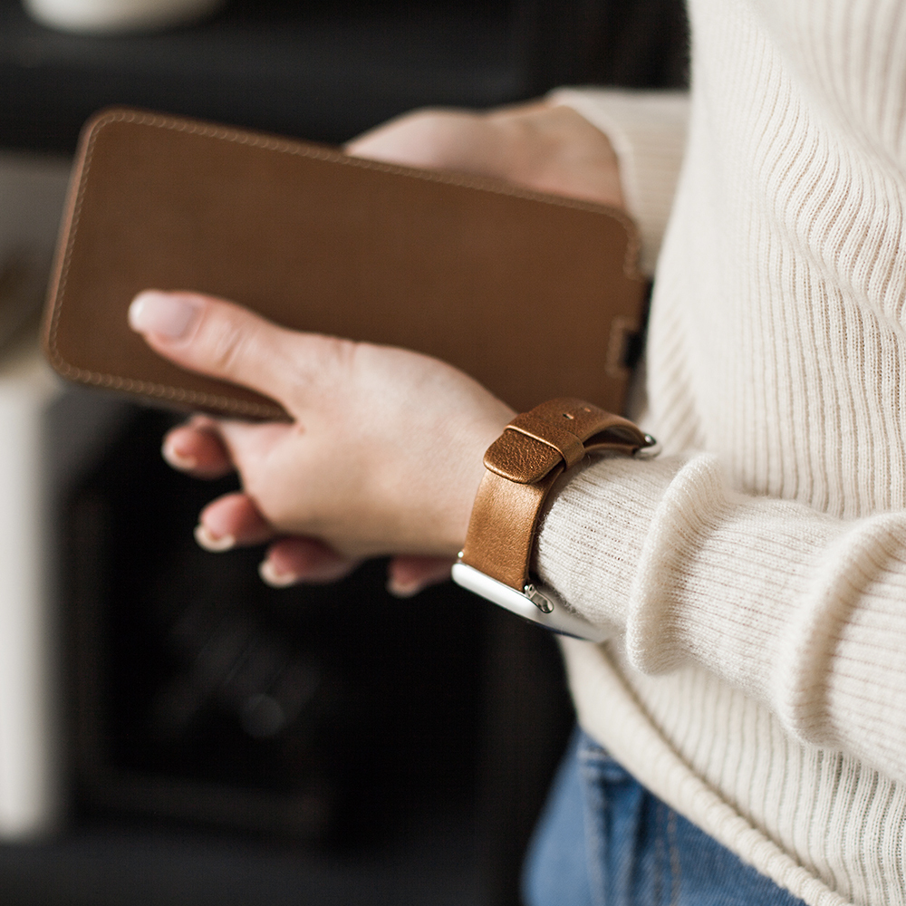 Ремешок из натуральной европейской кожи премиум-класса. Мягкий, качественный, нежно прилегающий к запястью. Ручная работа, французский стандарт качества.