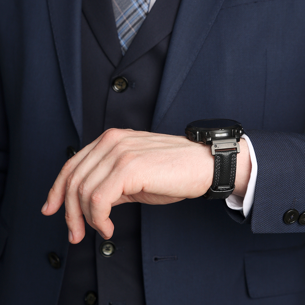 Ремешок для часов Garmin 47 mm с креплением из кожи теленка, черного цвета