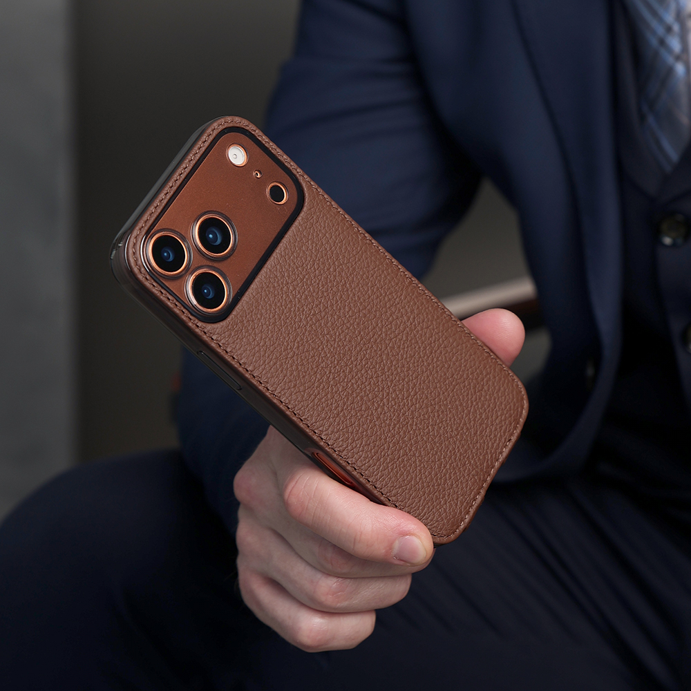 Чехол для iPhone 17 Pro Max из натуральной телячьей кожи цвета шоколад — это глубокий тёплый оттенок, который выглядит дорого и сдержанно в любой ситуации. Такой 17 pro max чехол подчёркивает классический стиль и легко сочетается с деловым и повседневным образом. Мягкая телячья кожа приятно ощущается в руке и со временем приобретает благородную патину, усиливая характер изделия.