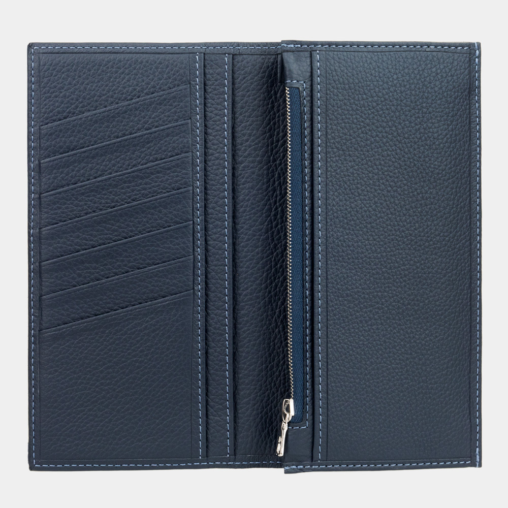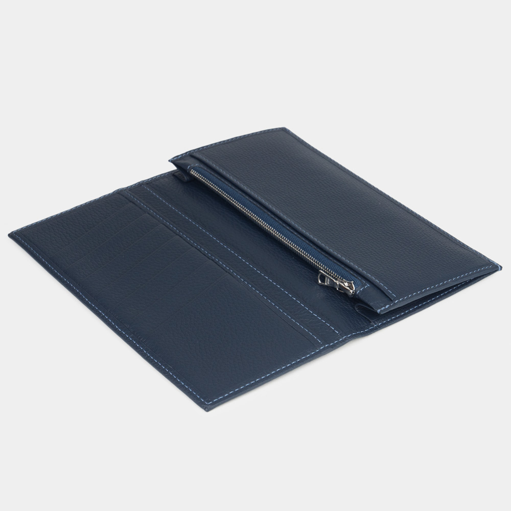 Кошелек женский Eclair изготовлен из мягкой кожи синего цвета. Элегантный и утонченный дизайн. Есть отделения для монет, визитных карточек и купюр. Ручная работа.