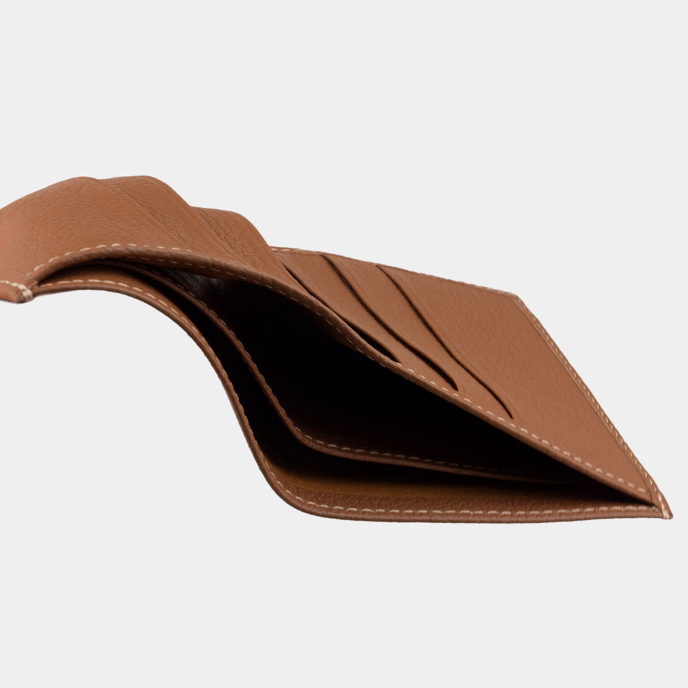 Классический портмоне, с отделениями для карт и купюр, с глубоким потайным карманом. Тонкая, плоская, легкая модель, незаметная в карманах брюк и пиджаков — поэтому ее особенно любят мужчины в классических костюмах.