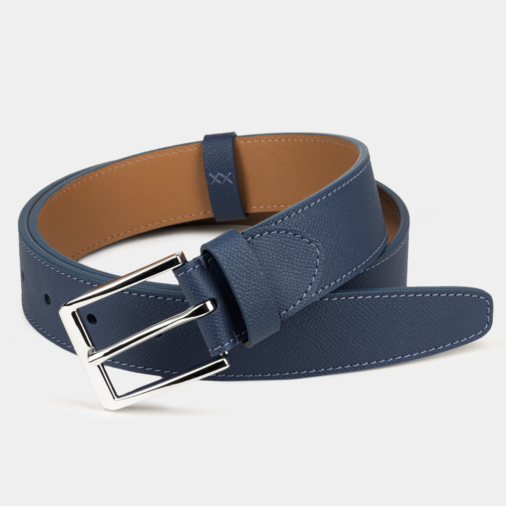 Ремень мужской 40 мм из кожи сафьяно, синего цвета